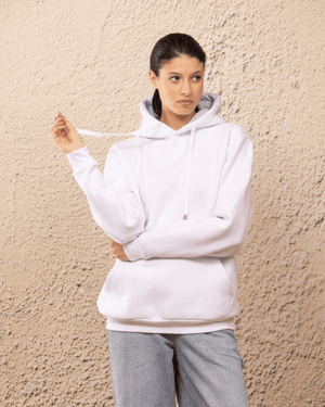 Sweat à capuche coupe oversize, à manches longues, confectionné en 100 % coton molletonné pour un confort optimal et une tenue durable.