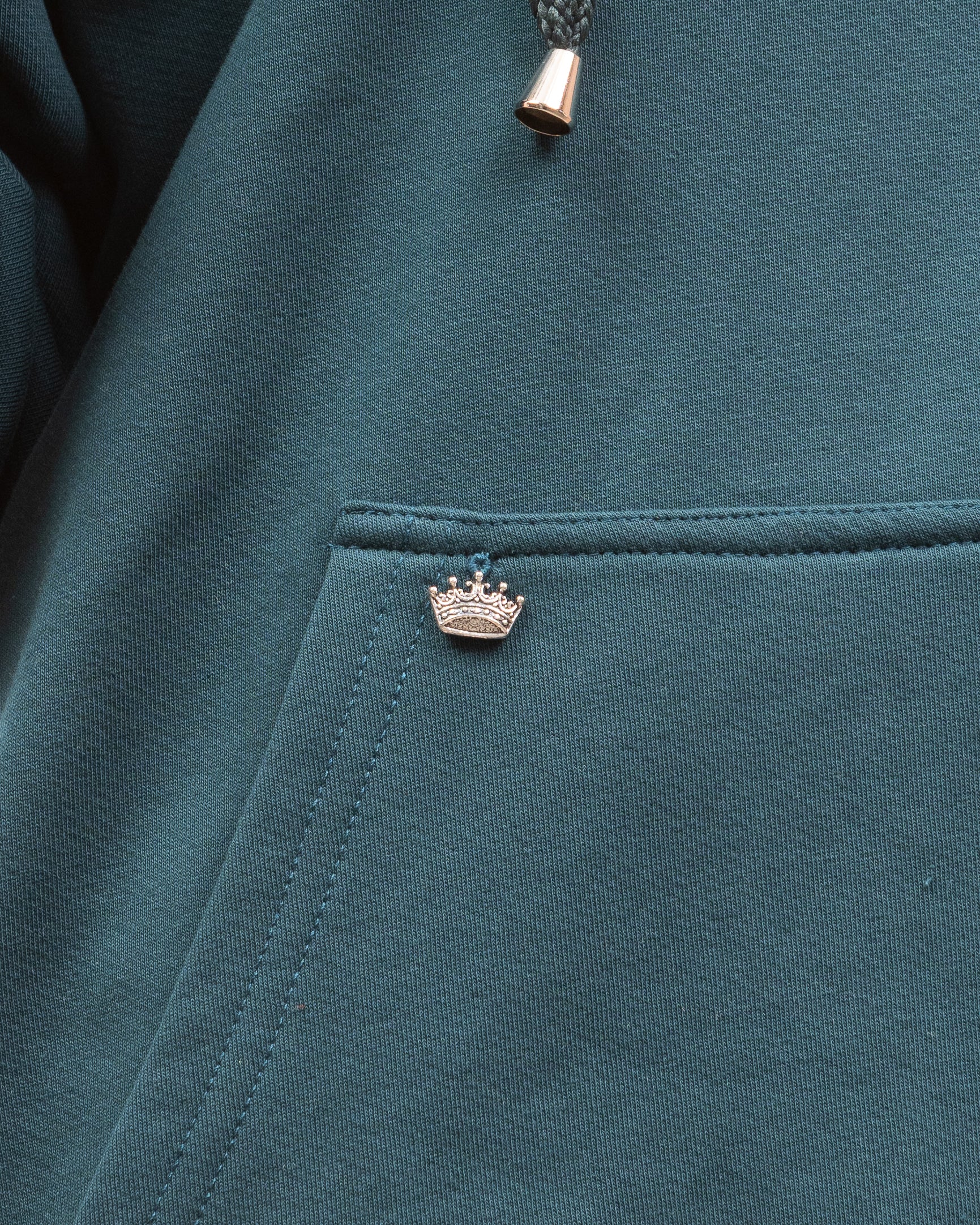 Capuche doublée, cordon ajustable, finitions côtelées aux poignets et à la base.